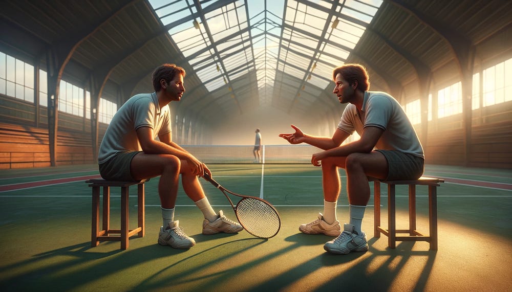 Jogador de tênis precisa entrar em um jogo com a cabeça "vou f*der esse fdp", lógico que com ética e honestidade. Querer muito ganhar, querer muito vencer, é o que deixa o Tênis muito mais difícil e muito mais recompensador. A pior sensação que se pode sentir é de não ter feito o seu melhor quando poderia. Claro que tem gente que abusa disso… diz que uma bola foi fora quando na verdade foi dentro… etc, mas isso ai é anti-ético antes de mais nada.