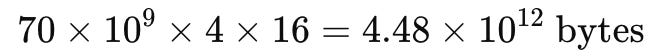 A memória necessária para servir um modelo LLaMA com 70 bilhões de parâmetros, carregado com precisão de 16 bits, é de aproximadamente 168 GB.