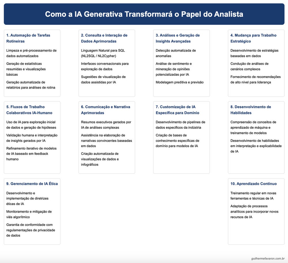 O verdadeiro valor dos analistas residirá em sua capacidade de navegar na intersecção entre ferramentas de IA e tomada de decisões estratégicas, gerando insights de profundidade e precisão sem precedentes.