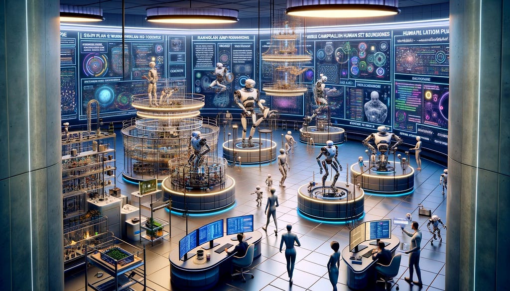 2. Em seguida, os sistemas de IA precisarão estabelecer objetivos e parâmetros para orientar seu comportamento. Teremos que definir limites cuidadosos para garantir que eles permaneçam alinhados e controláveis. Nesta fase, os sistemas de IA serão aproximadamente tão inteligentes quanto pequenos animais domésticos.