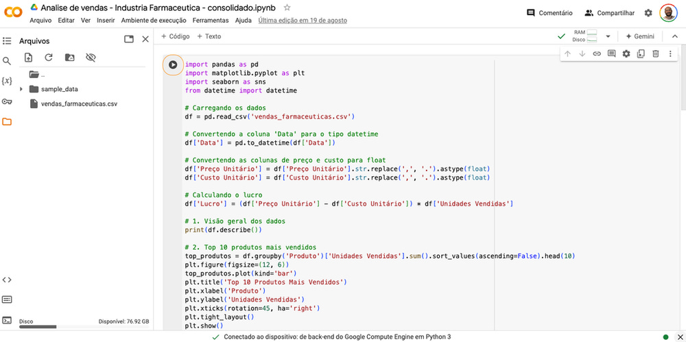 Com nosso código gerado pela IA, vamos usar o Google Colab para executá-lo: