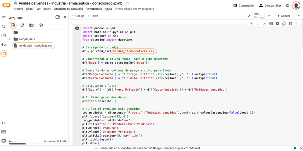 Selecione o arquivo "vendas_farmaceuticas.csv"